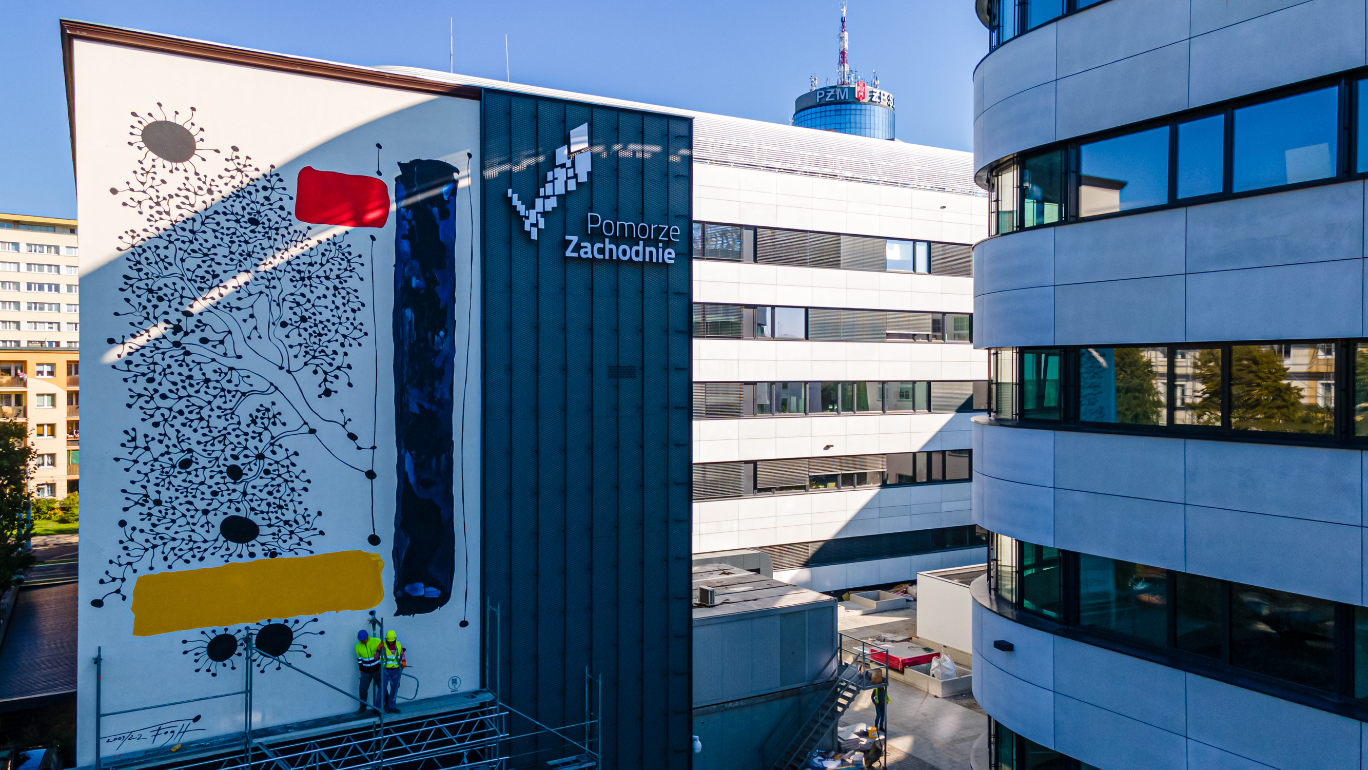 Zakończyły się prace przy dwóch ogromnych malowidłach na ścianach szczytowych budynku urzędu marszałkowskiego przy ul. Piłsudskiego w Szczecinie. Dzięki zastosowaniu farb katalitycznych elewacje - w sumie 350 metrów kwadratowych - pochłaniają zanieczyszczenia powietrza - dwutlenek węgla i tlenek azotu. Nowe ekologiczne murale oficjalnie zaprezentował Stanisław Wziątek, Członek Zarządu Województwa Zachodniopomorskiego. Towarzyszyli mu autor obrazów Andrzej Fogtt, wykonawcy prac malarskich z MurallStudio i architekt Wojciech Bal.