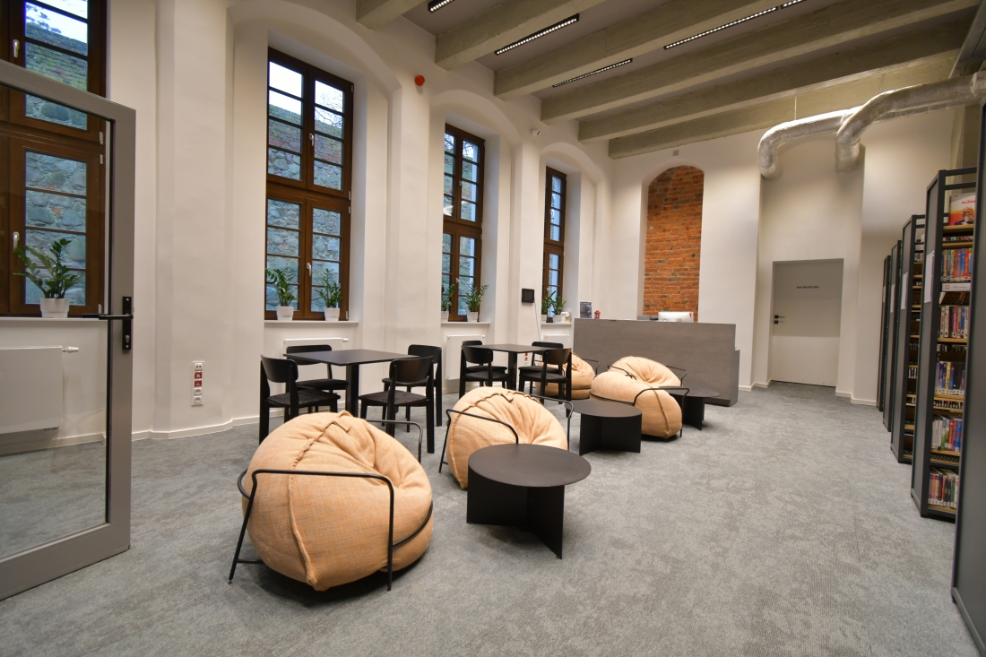 W obiekcie wydzielono salę dla dzieci nieczytających oraz boks akustyczny do pracy głośnej/ cichej. W części młodzieżowej przestrzeń zaaranżowano w atrakcyjny sposób, tworząc zejście z antresoli w postaci amfiteatru. Ponadto powstała Pracownia Kreatywności – miejsce przeznaczone do realizacji nowych działań edukacyjno-społecznych i kulturalnych.