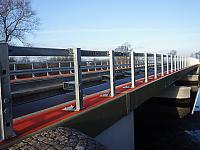 Stara 60-letnia konstrukcja, która w wyniku długoletniej eksploatacji znajdowała się w złym stanie technicznym, została częściowo rozebrana. Wymieniono dźwigary i całą płytę pomostu oraz część innych elementów konstrukcyjnych. Po rozbiórce prowadzone były prace polegające na wzmocnieniu przyczółków i znajdujących się na rzece filarów. Wyremontowany most posiada trójprzęsłową konstrukcję. Most, tak jak jego poprzednik, ma 41,8 m długości i 8,95 m szerokości.