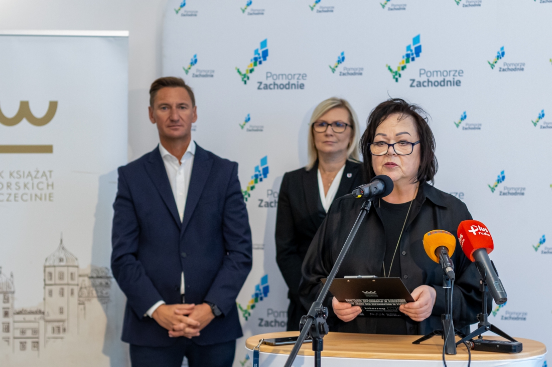 - To wielka radość, że możemy gościć państwa choćby we fragmencie odrestaurowanej części Zamku Książąt Pomorskich. To, co zobaczyliśmy podczas dzisiejszego historycznego spaceru z Galerią Gotycką w roli głównej, naprawdę zachwyca. Zależało nam, aby podczas dzisiejszego spotkania byli obecni przedstawiciele świata nauki, osoby merytoryczne – a więc pani doktor Małgorzata Gwiazdowska, która służyła swoją wiedzą historyczną, czy też archeolog pan Marek Dworaczyk, który opowiedział, jakie tajemnice z przeszłości odkrywał zamek w czasie prowadzonych prac. Ta inwestycja kosztowała nas naprawdę wiele wysiłku, a pamiętajmy, że na pierwszym planie – obok odbudowy - zawsze mieliśmy bezpieczeństwo. Efekt jest naprawdę wspaniały, możemy być z niego dumni. Jestem pewna, że taras będzie zachwycał również wszystkich mieszkańców – mówiła Wicemarszałkini Województwa Zachodniopomorskiego Anna Bańkowska.