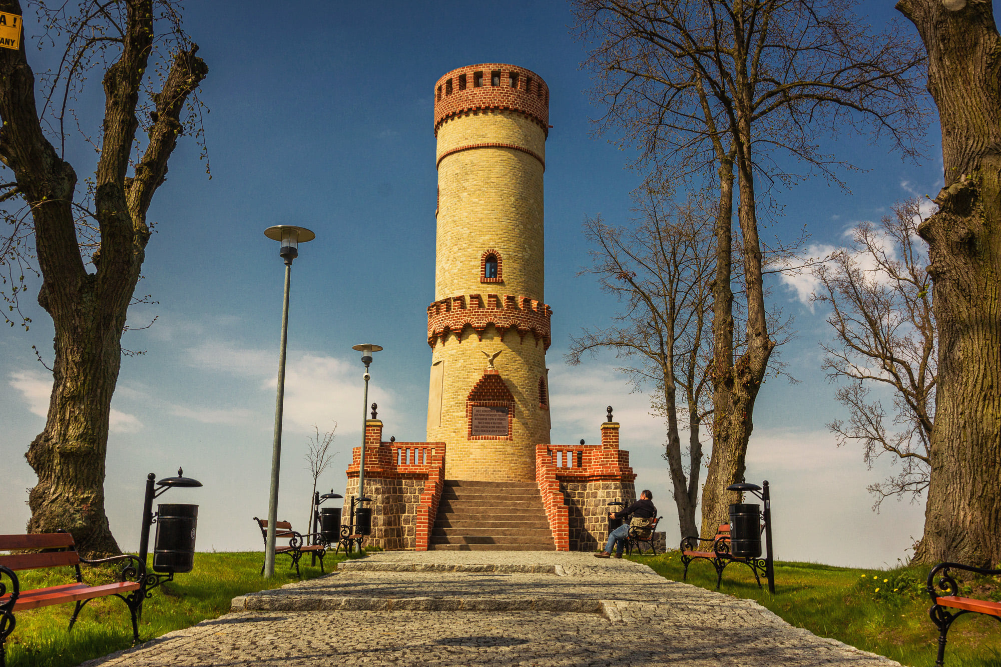 Wieża zbudowana została w 1895 roku jako pomnik dla uczczenia poległych w wojnach żołnierzy pochodzących z Cedyni. Zabytek o wysokości 14 metrów znajduje się na wzgórzu, skąd roztacza się wyjątkowa panorama miasta i widok na Żuławy Cedyńskie. W czasie II wojny światowej, w lutym 1945 roku, stanowił ważny punkt obserwacyjny. Następnie obiekt użytkowały Wojska Ochrony Pogranicza. Po 1956 roku został wyremontowany i udostępniony do zwiedzania. Po rewitalizacji wieża na pewno zyska jeszcze większą popularność wśród mieszkańców i turystów.